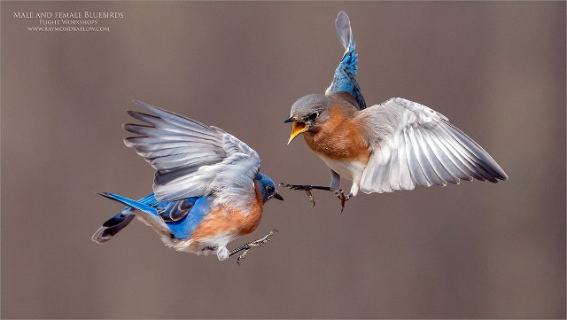 These two eastern Bluebirds are suspended in a midair ballet of sorts. A frame freezing image, with both birds caught in spectacular poses, tack sharp and beautiful.