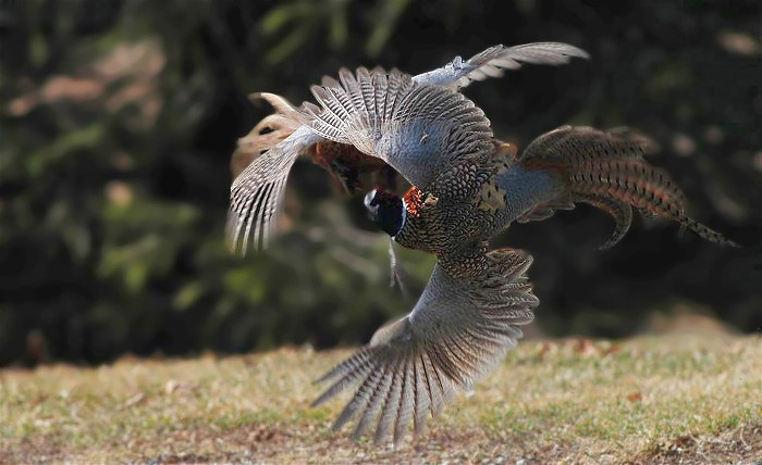 This was with the image below, only the third or fourth click of the shutter I ever made with a digital camera after years with film. I was blessed to have two male Ring-necked Pheasants doing battle right outside the window of my car. If they were human, this image would have been made in the corner bar.