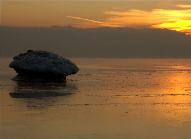 While the sunrise colors in the image below denote warmth, the thin ice and the silhouetted iceberg on Lake Michigan say winter. Yes Lake Michigan is big enough and wild enough to have icebergs.