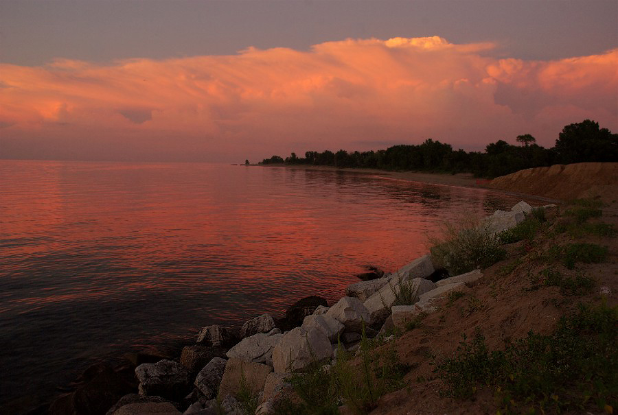 Sunrise storm and Lake Michigan.