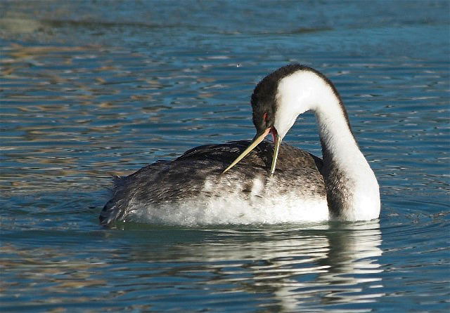That was the case when I found this Western Grebe in southern Wisconsin. There were actually about five of them and I had a good morning as they swam and preened and put on a show for my camera and I.