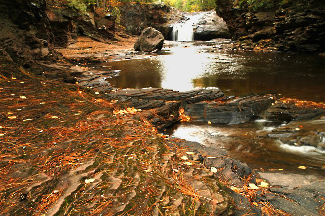 This first pair of photos was made somewhere in Wisconsin’s north woods. It was autumn yet I struggled mightily to convey a truly powerful vision. I decided to capture what I saw, not what I wanted. It was and I am sure still is a peaceful, and pretty place. I loved the rock in this area.