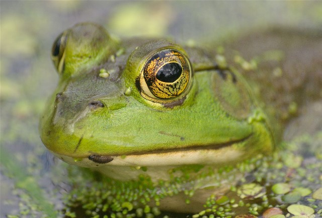 Depth of field is always an issue when you are up close to a critter. Getting enough depth of field to cover this Bull Frog with everything sharp and in focus, was impossible, so I did what I knew I could do. I made sure the eye that would appear closest to future viewers, was crisp and beautiful.