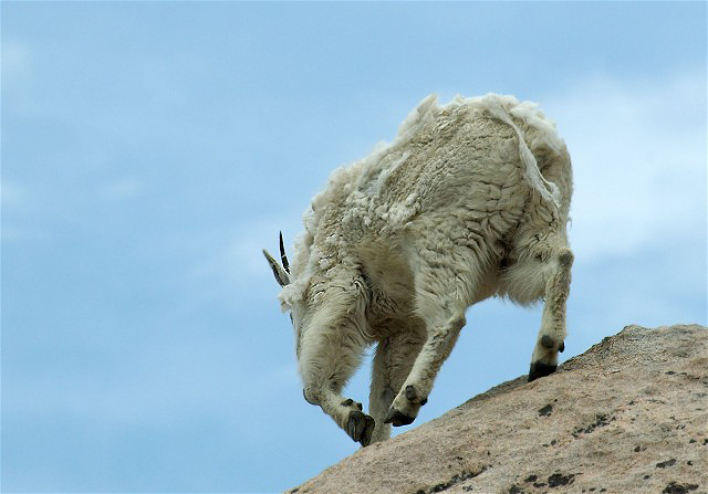 Wildlife photographers needn’t always concern themselves with the “perfect pose”, when making images. This wild Mountain Goat is headed for the downward side of the mountain, or better said, the other side of the mountain. This shot was taken in Colorado above 14 thousand feet. I did not follow my subject as I am not quite as sure footed as it was, especially on the “scary side” of the mountain. Also, I could hardly breath in the thin air. Of course I was also a smoker at the time which made me less than fit for the high peaks of the Rockies.
