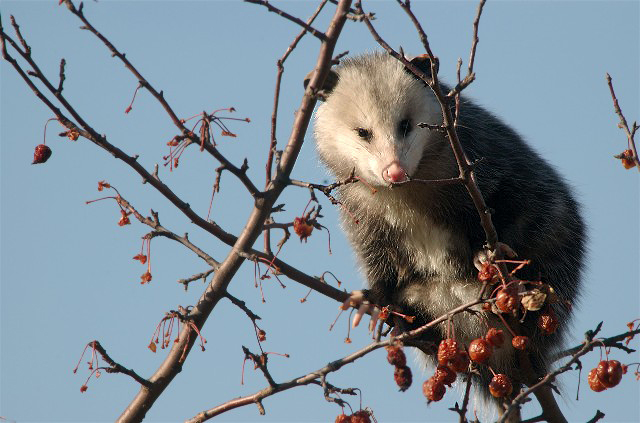 I have seen my share of wild opossums. Usually in the dark of night, but every so often, during the daylight hours. I have had one opportunity and only one, to get pictures of that subject.