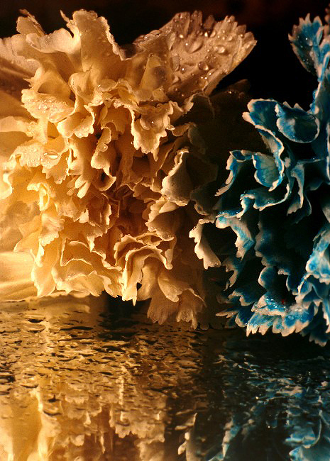 I do not believe I could at this time, even remember what I was thinking when I created this studio shot of a Carnation, mirror, water and light. Or what it means, except that it was not about that type of flower. Light, reflections, composition and contrast surely seems what was on my mind.