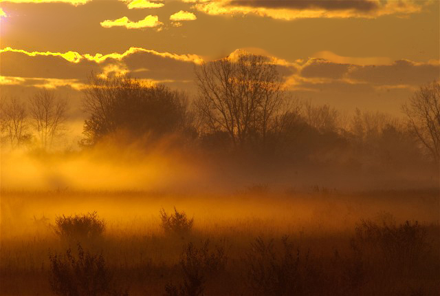 This next one is a foggy prairie sunrise, and is side to back lit. As fine a morning as I ever have spent.