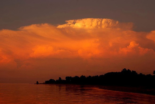 Backlight can make a powerful statement. This stormy Lake Michigan sunrise image, obviously has within it, both an ominous tone, and a “touch of beauty”. The two can live together and need not be mutually exclusive.