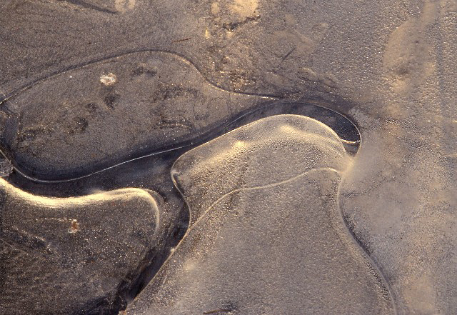 Close-ups of ice patterns are often photographed under overcast conditions, by the choice of the photographer. This one seems to be mostly but not entirely direct sun. I felt that the mixture of light and sun here, is what made the image.