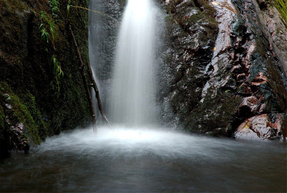 Inner forest waterfalls that are at least a bit more diminutive than the one above, can be highlighted and exploited if you will, by what I call spotlighting. The sun shone through the forest only a little, but the white capped water, stood out from the black rock in a powerful way. That rock also was bathed in just enough light, to provide texture (once again) and render this scene naturally beautiful and powerful at the same way.