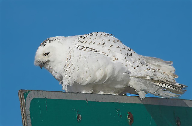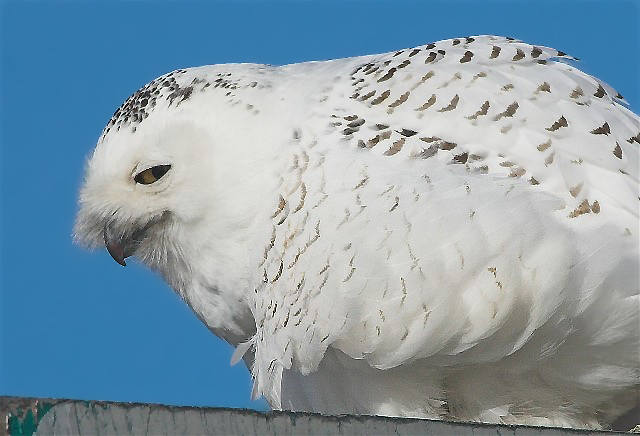 I think my first image below dies a nice job in showing a profile of a pretty close Snowy Owl.