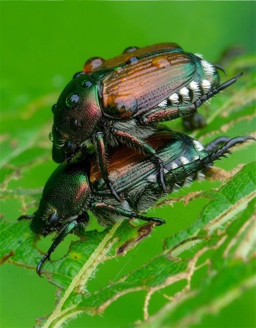 The beetle below was coming out of the shadows while covered with the dew of the night before. It all made for some dramatic light and shadows. It also made the gorgeous colors on this critter just glow. I used a 105mm macro and a good tripod for creating this photo. No flash.