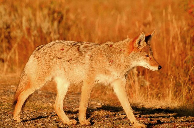 I have known photographers who would throw away the image you see below of a coyote just after sunrise. They would lament, that’s not the color of a coyote. They must think I either covered my subject with paint, or photo shopped it into this color. When a subject is in intensely colored light, until that light changes, that is the color of that subject.