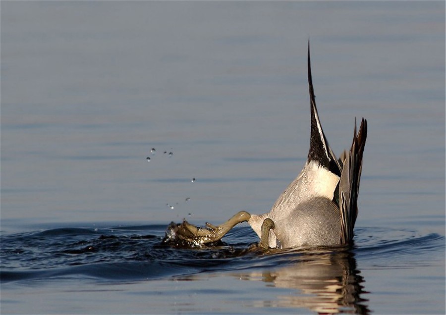 If you cannot photograph the entire bird, capture their most important feature. This male Northern “Pintail”, is showing us that feature and displaying the bird’s dabbling skills at the same time.