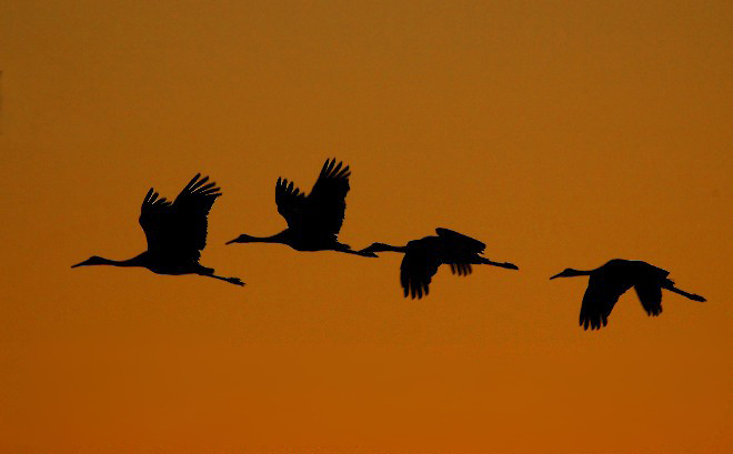 Avian photography is not just about being able to identify a bird. It’s about shape and form, action and mood. Below are a quartet of Sandhill Cranes as they paddle their way through the air waves at dawn or dusk. Panning skills are essential for shots like this. I honed my skills photographing car racing with machines traveling at times, well over 200 mph.