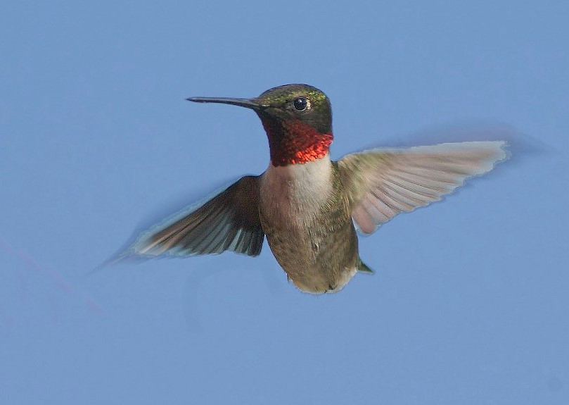 A fraction of a moment, is all you get when a (male) Ruby-throated Hummingbird appears on the horizon. A moment frozen in mid air, and in time.