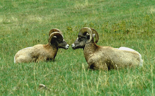 The two Bighorn Sheep you see below, appear to be having a moment of friendship.