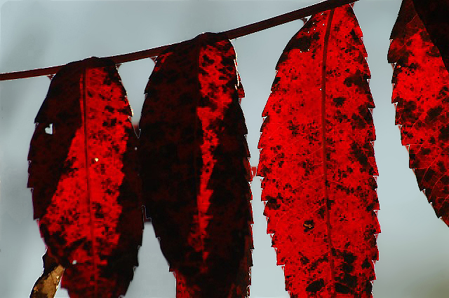 I do not believe that these autumn Sumac leaves were photographed at sunrise, but I enjoy the effect that they are given as they lay against the sky.