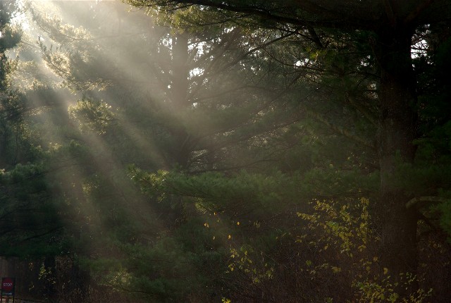 The images below are two of my favorites from my files. All of those birds and mammals, and straight forward landscapes and macros of flowers, insects and patterns, and on and on, to me are no more powerful than the atmospheric statements that are made via the “play of light” below. A dark forest with an almost Godly burst of light, a gush of falling water lit by the heavens, and we have reality and fantasy at the same time.