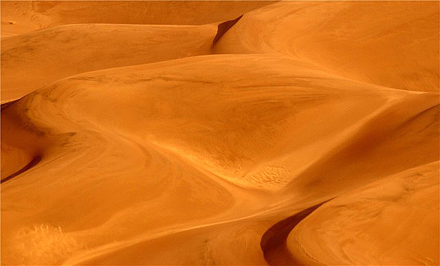 Below we have sand colored dunes. This place is ripe for great dune related landscapes with mountains in the background, and a mountain stream in the foreground. Still, an abstracted vision of the warm colored sand is a must. I made my share of landscapes there with the aforementioned subjects mixed in with the sand, so to speak, but patterns in the sand are a great abstract there. At least to me. Just set up camera and tripod and select sections of sand, shape, and dimension.