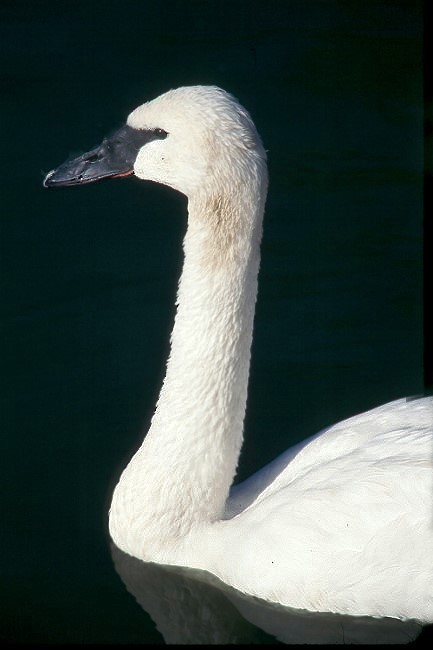 Do not shy away from dramatic light. Variety is the spice of life and there is no rule that says a simple swan (or other bird) photo cannot be unusual. This bird photo is the epitome of purposefully used contrast, High contrast. White bird and black featureless shadows. Notice however there is still texture on the bird via some sidelight. In other words, it does not appear to be a cardboard cutout. In the digital darkroom, I brought back a little light in its bill.