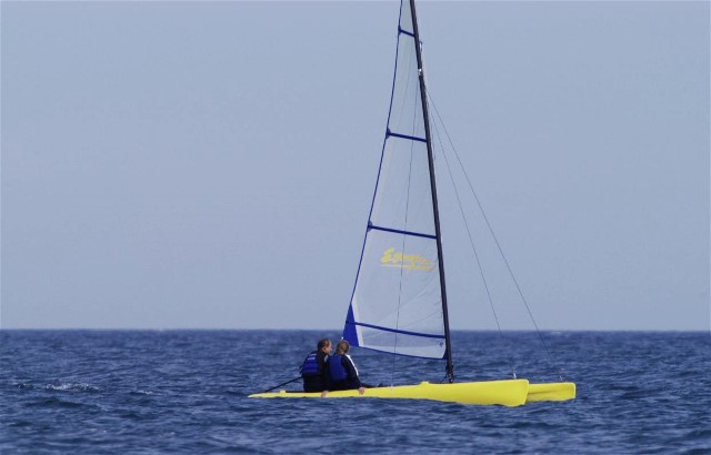 This small sailboat and crew seemed to strike a nice pose for me. I panned and shot.