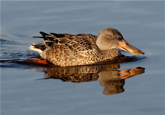 This female Northern Shoveler cast a beautiful reflection as she swam along peacefully.