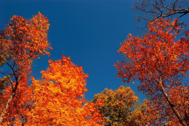 Autumn trees in their full glory, needn’t have anything but tree and sky to be spectacular. Look for angles if you will, to make them cathedral like in their nature. Something you can look up to…….so to speak.