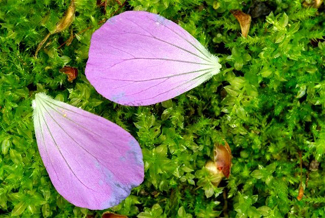 There is no rule that says flower petals need to still be attached to the rest of the flower. Fallen petals make great subjects. This mossy background helps to distinguish the flower petals. Differing colors and textures within the photo make images pop!