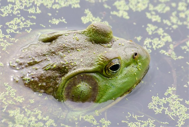 I love frogs and Green Frogs make great subjects. I managed this picture from an old wooden pier.