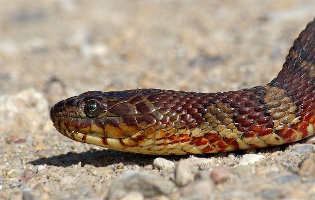 These animals are nonpoisonous but are very feisty, and they bite. I was working with a snake expert that I bumped into at a Wisconsin marsh. He was counting several species of snakes. He was bitten by this snake while I was making images. The last I saw of him, he was in his car heading home where he could clean the bite properly. Thankfully for my sake, the snake seemed more interested in my camera than me.