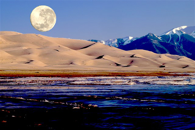 Great Sand Dunes, Colorado, Full Moon, & Mountain runoff.