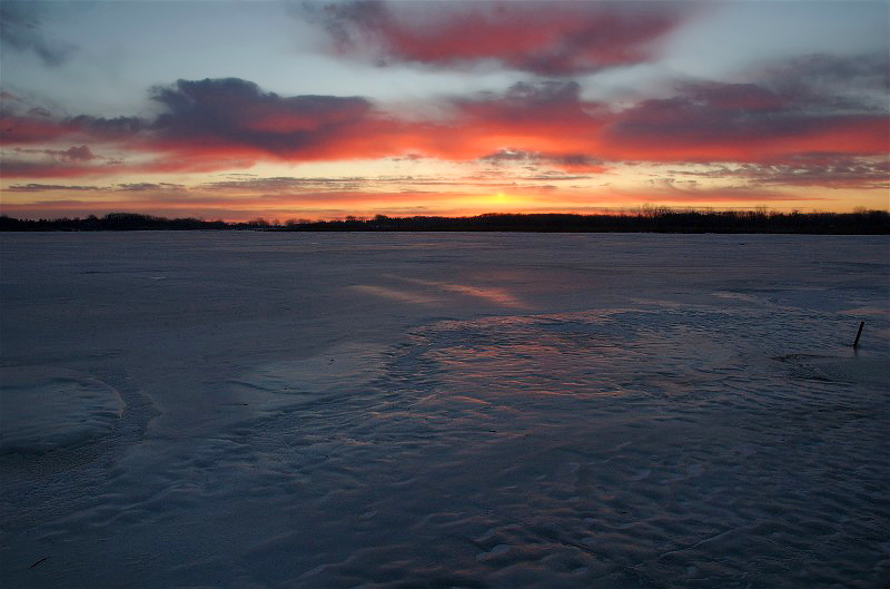 A small, frozen winter’s lake at sunrise, would make my day every time.