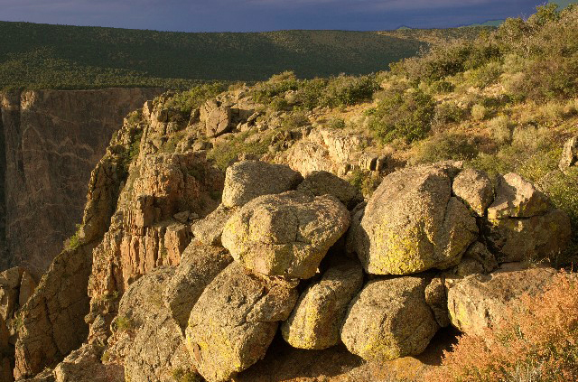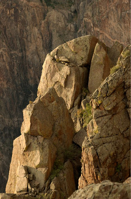Rock cliffs such as this one in the Black canyon of The Gunnison in Colorado, to me are fascinating. I enjoyed composing this with a hint of the canyon below.