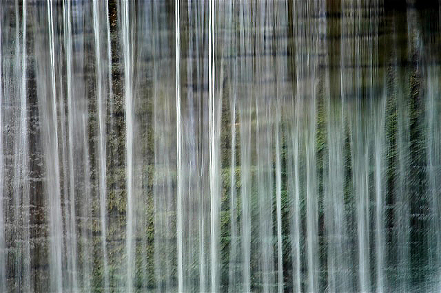 From frosty wood to dry wood to rain drop laden grasses, ice patterns and a dew dropped sheet web, and finally some falling water in nice even ribbons, natural abstractions abound.