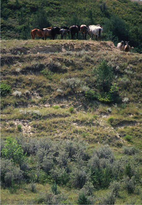 The image below shows (barely) about twelve wild horses a the top of the hill. The location was Theodore Roosevelt N.P. in North Dakota.