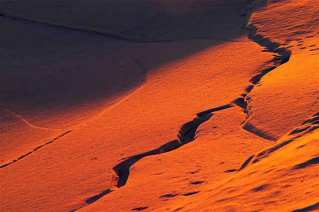 This is a winter sunrise and yes, that is snow. The color of anything is what the color really is, plus what the color of light that it bathes in is. It does pay to keep your exposure fairly low with images like this. Otherwise, you will wash out the richness of the color.