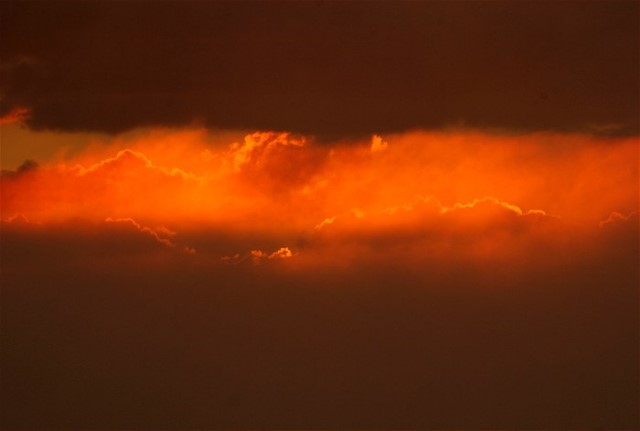Stormy sunsets to me, can be a subject in and of themselves. I enjoyed the darkness above and below the sky and the contrast to the storm that it provided.