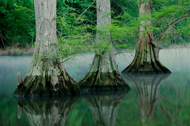 Cypress Trees with their base right in the water of a swamp or quiet river, always seem to have a natural order to them. In this case, that is the Mingo River in Missouri if memory serves.