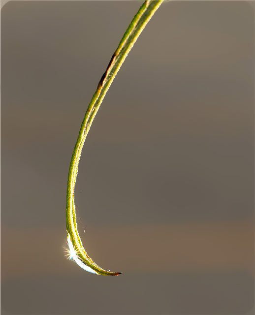 This incredibly simple composition of a type of grass, was still composed carefully while I did my best not to knock off that single drop of water on the end of the plant.