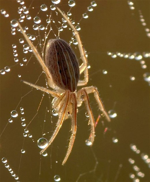 Dew covered beetle with early morning light.