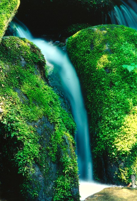 I enjoyed the contrast here of “cotton candy” like moving water, and the sharp, crisp greenery of the moss covered rocks.