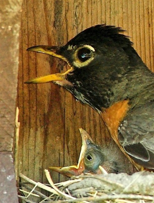 The images below are of a mamma Robin and her babies. This was made in a state park and the nesting box is just that, a box made by humans for birds to nest in. I remained as unobtrusive as possible. I used a 500mm lens possibly with a 2x tele extender..