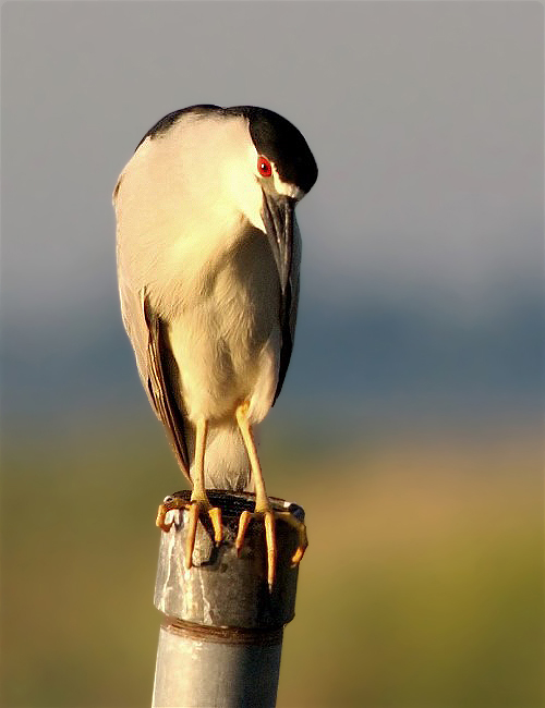 Moving away from eagles let us examine this early morning shot of q perched Black-crowned Night Heron. The downward stare is I am sure the bird scanning the waterway for fish.