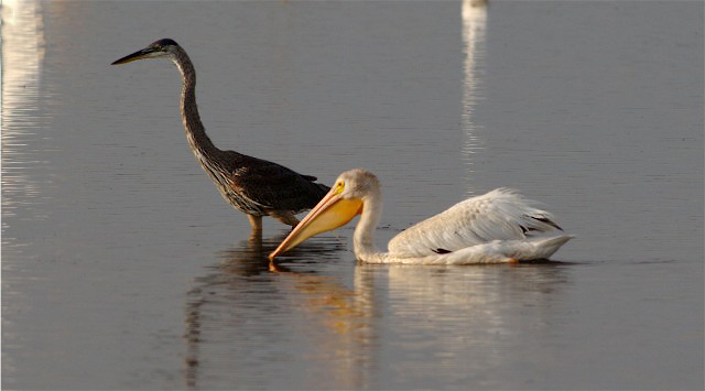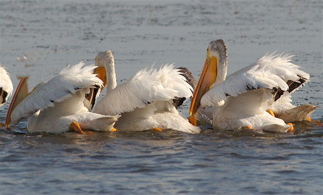 Mixed subjects. Below we have first a Pelican in the company of some Great Egrets., then a Pelican and a Great-blue Heron, and then some Pelicans and only Pelicans. All of the images were created at Horicon Marsh NWR in Wisconsin.