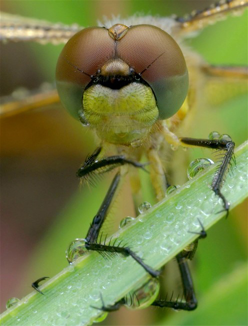 For this head on shot I used my trusty 105 macro. This subject was not over a pond although note the water drop between those big eyes.