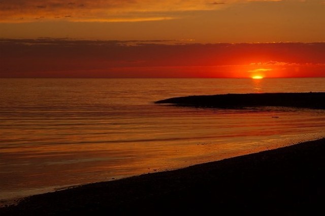 Certainly a stretch of beach, a peninsula of land, and a great lake (Michigan), presents viewers with sort of a dreamy kind of mood and atmosphere. Compositionally, leading lines are used here.
