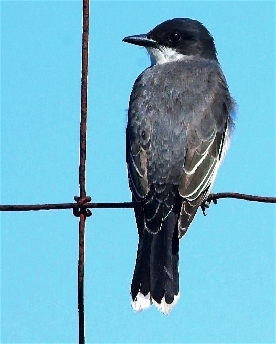 The Kingbird you see below almost looks as if he is in a zoo but I can assure you that fence is in my backyard.