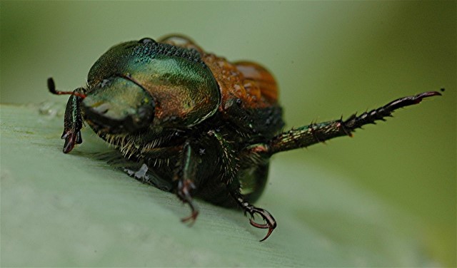 There’s nothing like a metallic green ad black beetle covered in dew drops.