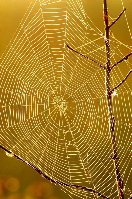Orb webs covered in dew are numerous at the right time of year.